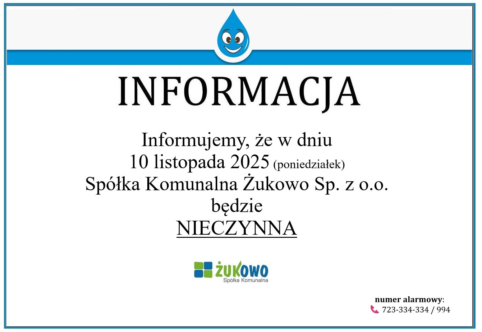 10.11.2025 Spółka Komunalna Żukowo NIECZYNNA