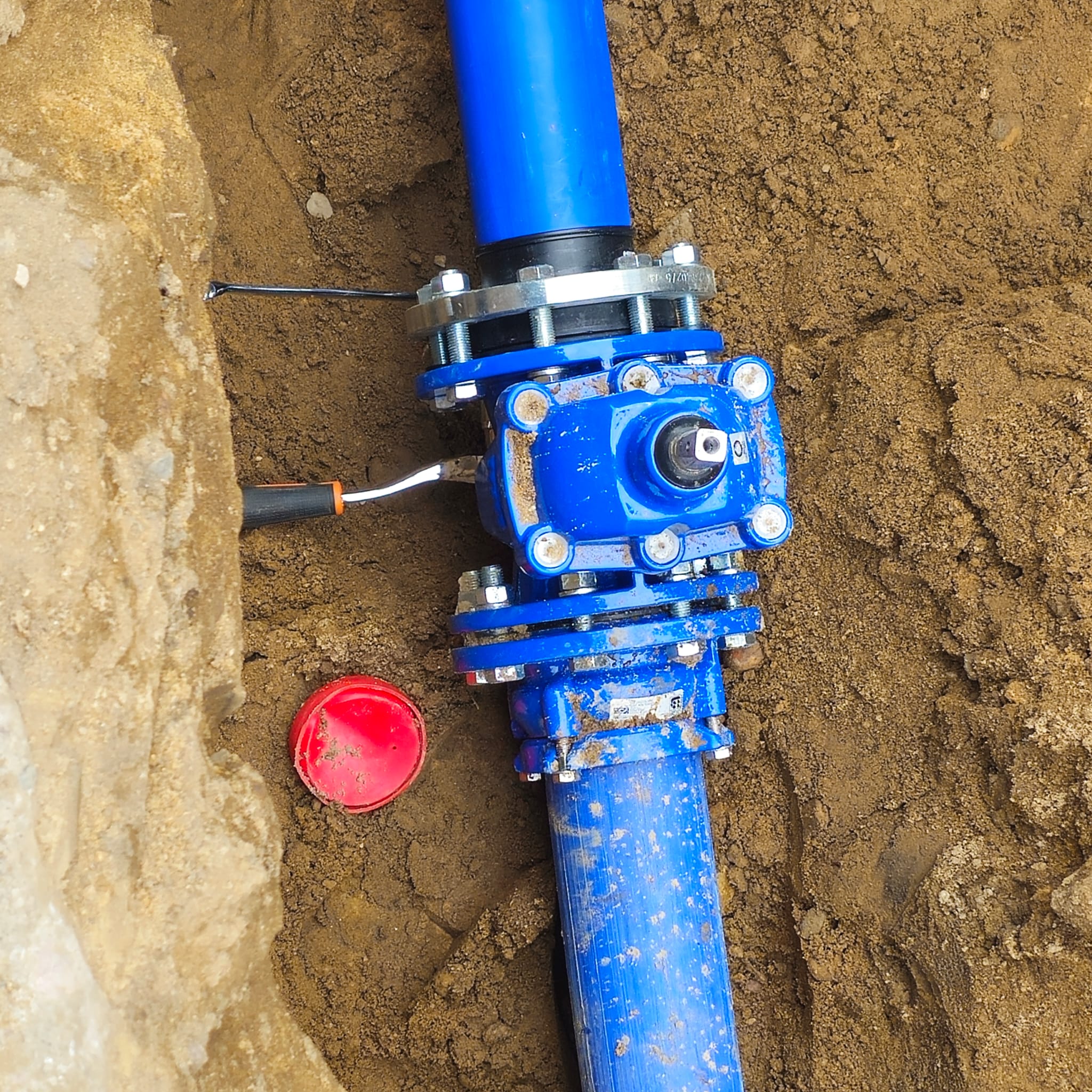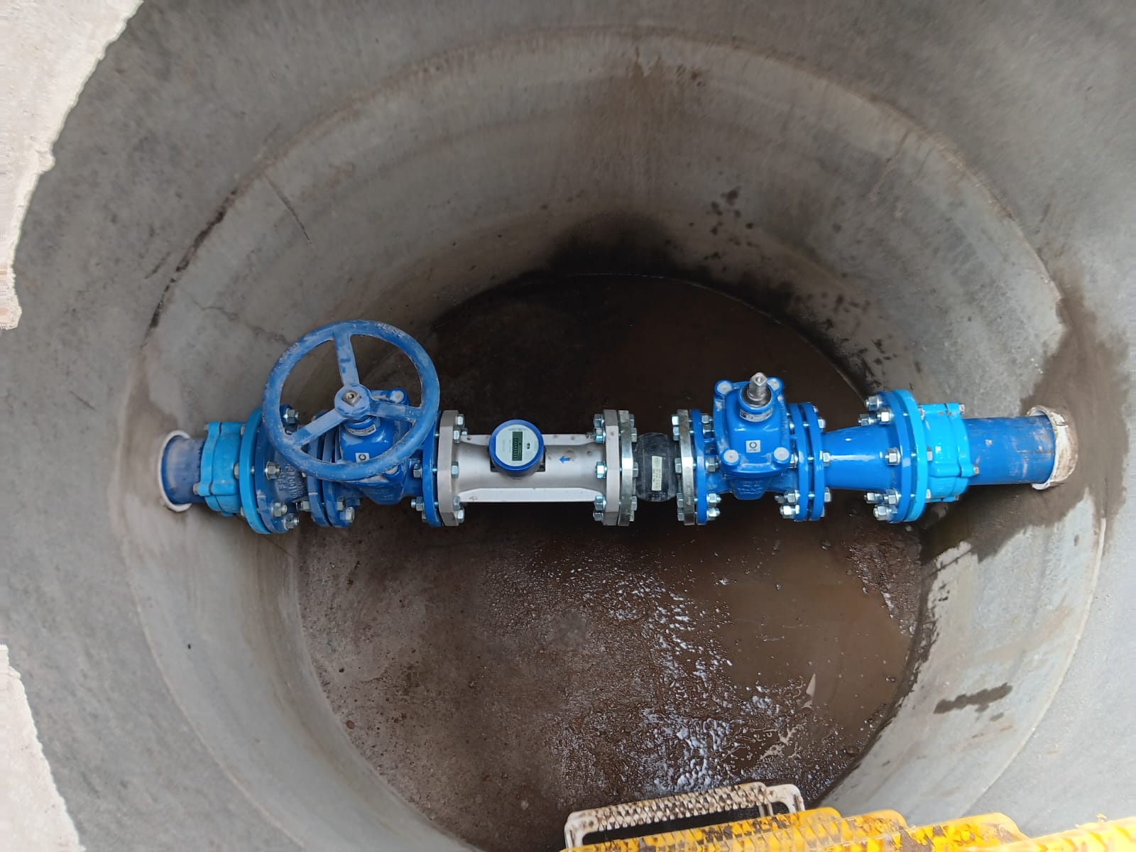 W ramach realizacji zadania wykonano niezbędne roboty instalacyjne oraz zamontowano wodomierz, który umożliwia kontrolę przepływu wody w nowym układzie zasilania.