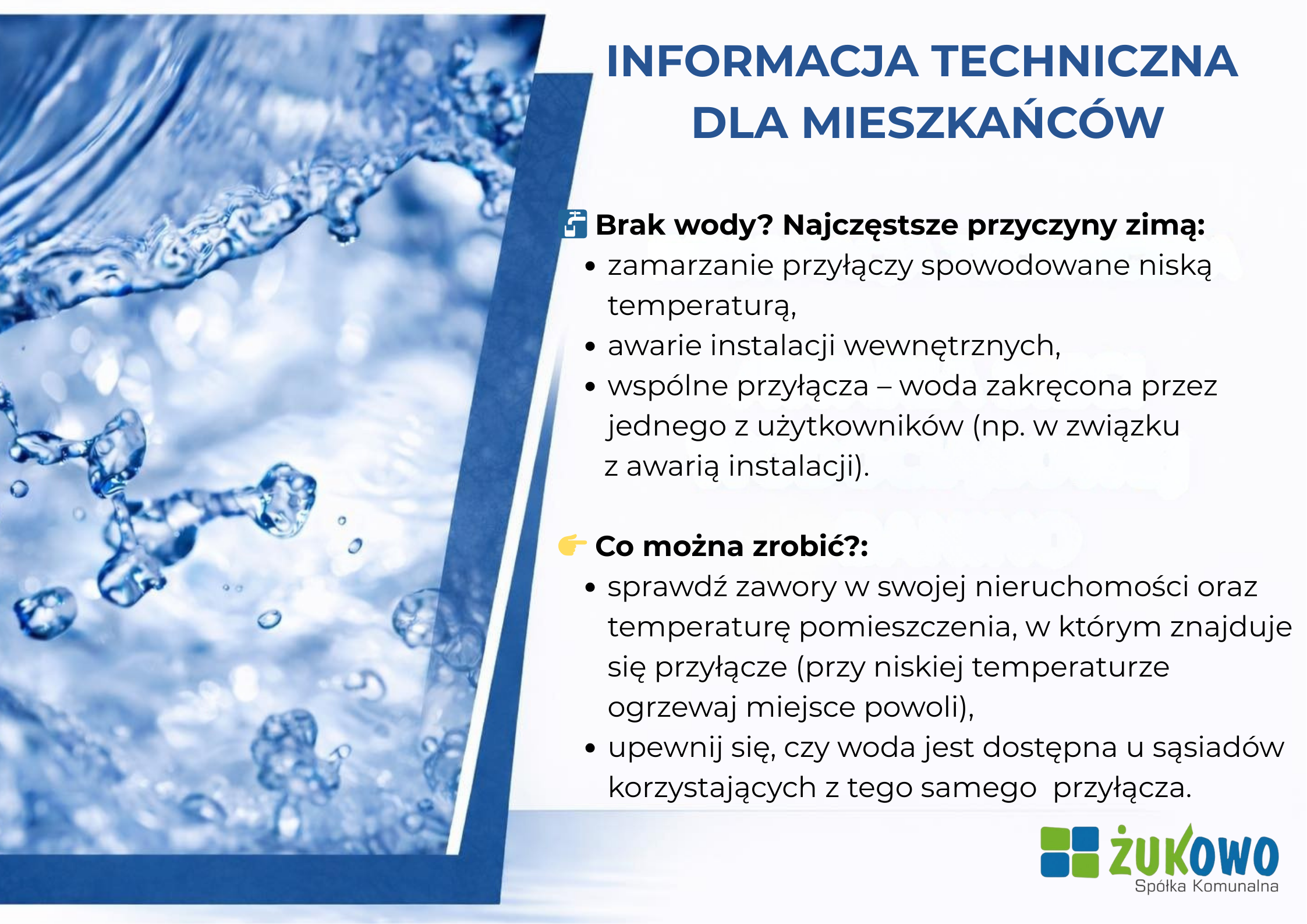 W ostatnim czasie Spółka otrzymuje wiele zgłoszeń dotyczących braku wody, które po weryfikacji okazują się być związane z: